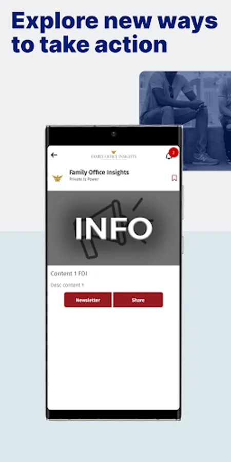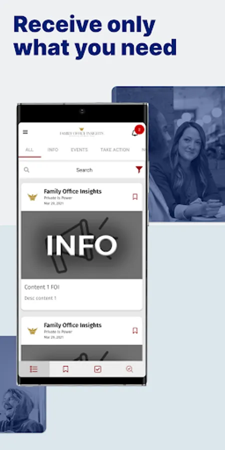 The Family Office Insights App allows for real-time audience engagement. Launch the app, follow and view the latest information, events & and engagement opportunities. Quickly swipe through content - bookmark what is of interest, toss aside what isn’t. Users can easily act, and engage on important initiatives. Never miss important updates again!