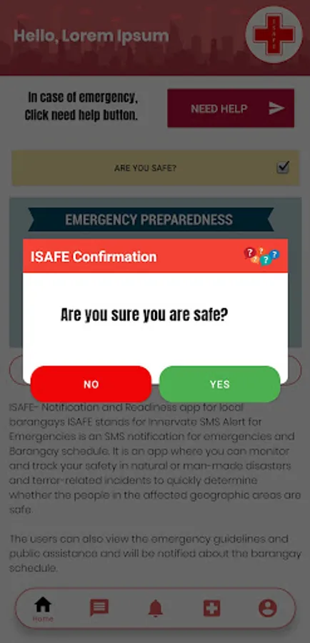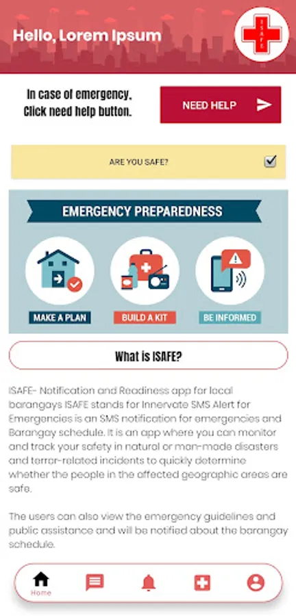 ISAFE stands for Innervate SMS Alert for Emergencies is an SMS notification for emergencies and Barangay schedule. It is an app where you can monitor and track your safety in natural or man-made disasters and terror-related incidents to quickly determine whether the people in the affected geographic areas are safe.