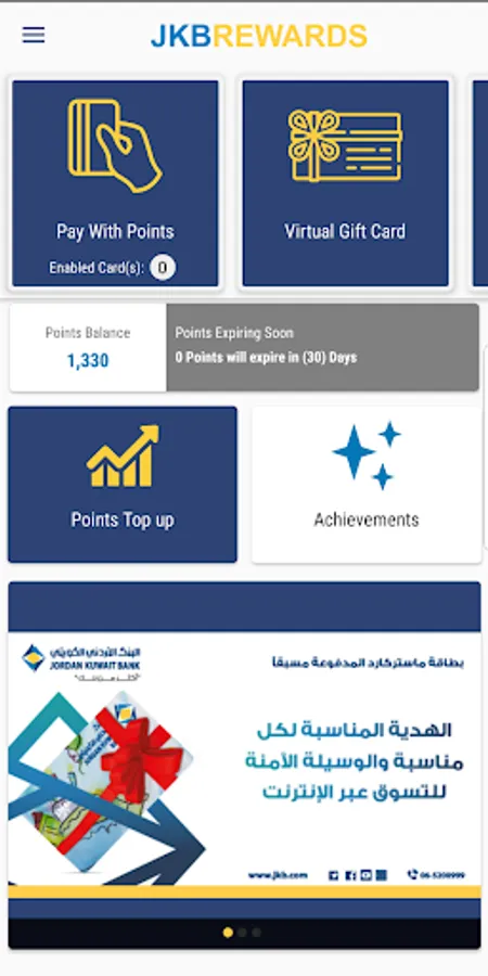 JKBRewards gives you the ability to redeem reward points earned through debit and credit card transactions, view your points’ balance, provide a statement with earned and redeemed points, and viewpoints that are about to expire.