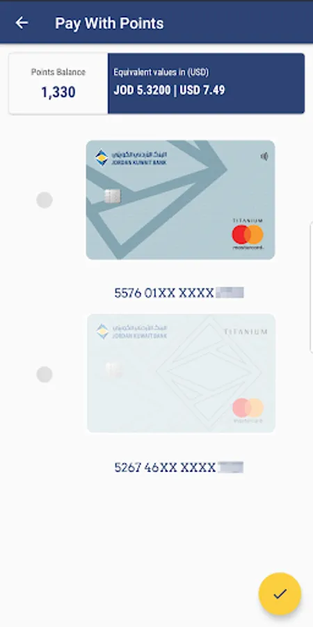 Through the application, choose the image of the card that you will use to make your next purchase transaction using points. When the transaction is executed, the value of the purchase will be deducted from your points balance directly instead of the card account. The activation of the card is done for each transaction.