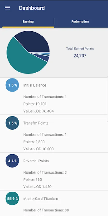 Through the application, choose the transfer icon then add new beneficiary to the list of beneficiaries, noting that the beneficiary must be participant in JKBRewards program. Select the required beneficiary then select transfer You will receive a One Time Password (OTP) to complete the transfer .