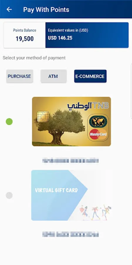 • Pay with points option: Use earned points to pay for any local and regional POS, e-commerce and cash withdrawal through ATMs.