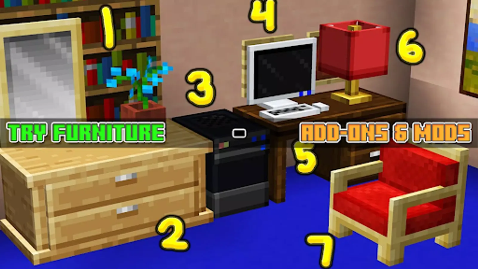 DISCLAIMER: Furniture mod is an unofficial application for search Minecraft PE. This application is not affiliated in any way with Mojang AB. All rights reserved. The Minecraft Name, the Minecraft Brand and the Minecraft Assets are all property of Mojang AB or their respectful owner. In accordance with http://account.mojang.com/documents/brand_guidelines .