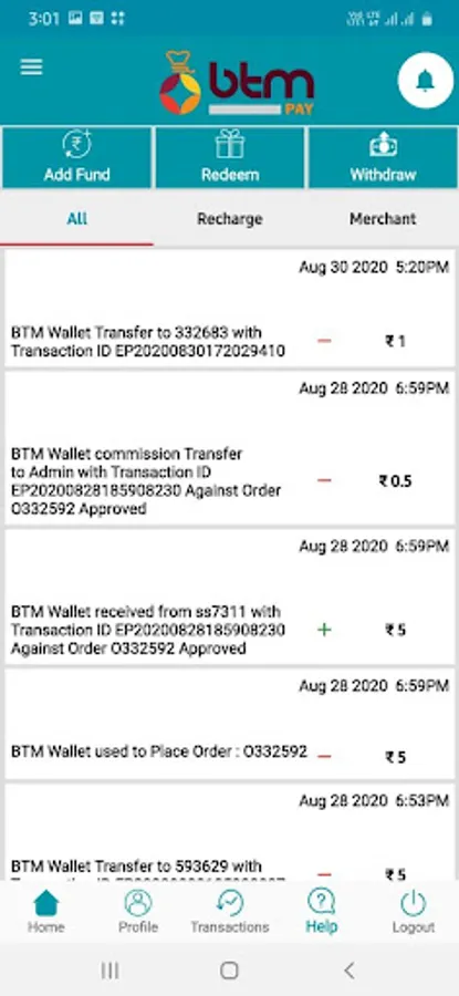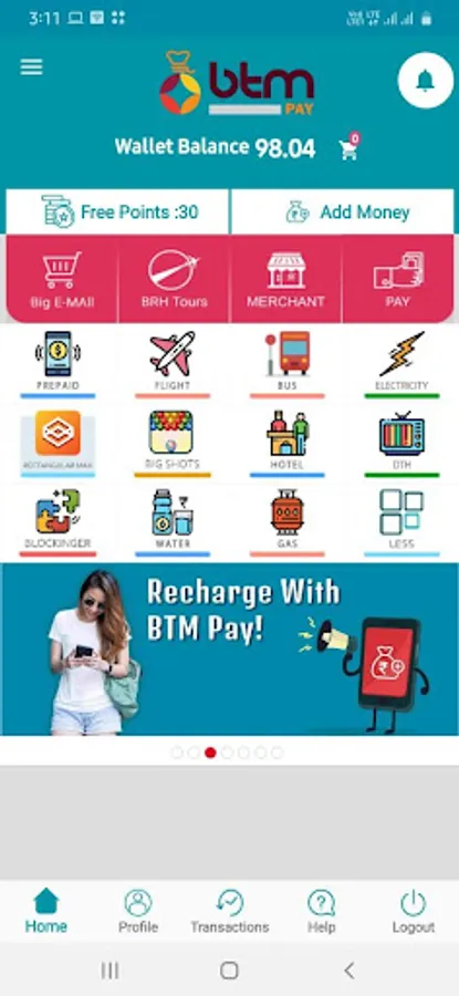 BTM Pay is a truly Indian payments app. Use Btmpay for mobile prepaid recharge, postpaid bill payment, utility bills, electricity bill payments, water bill payment, DTH recharge, merchant transactions, Bus booking, Flight booking, Hotel booking, and Insurance payments. With the facility of refer and earn we can earn money and use for utility services. One can track there transaction of bills and payments.
