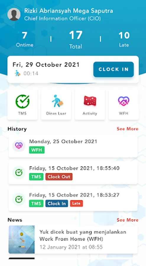 Online attendance system is now a necessity for companies, good employee empowerment might be obtained from recording and validating employee attendance data.