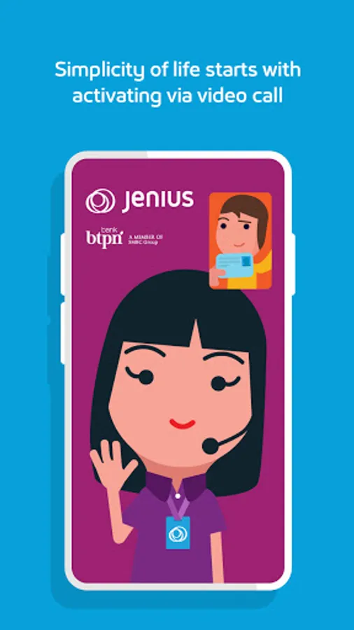 Download Jenius application, register and activate your account from anywhere, via video call.