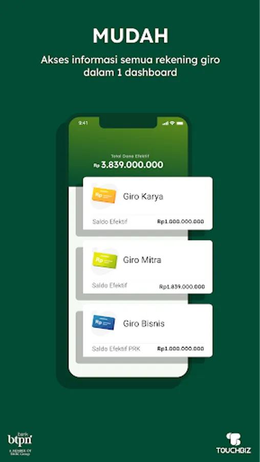1. As a solution from Bank BTPN, the TOUCHBIZ application can currently only be used by Bank BTPN customers who already have individual SME current accounts