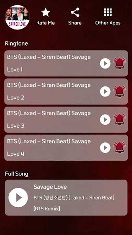 "JASON & BTS" present a new song that name's "Savage Love" , you will meet NEW HOT HIT "BTS" - savagelove by RINGTONE in this application.