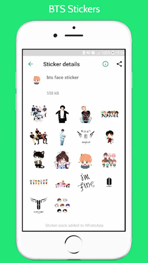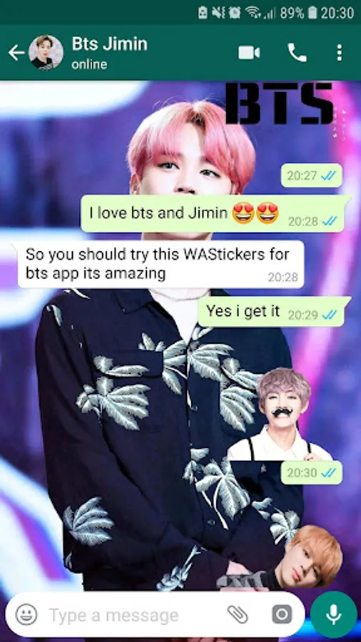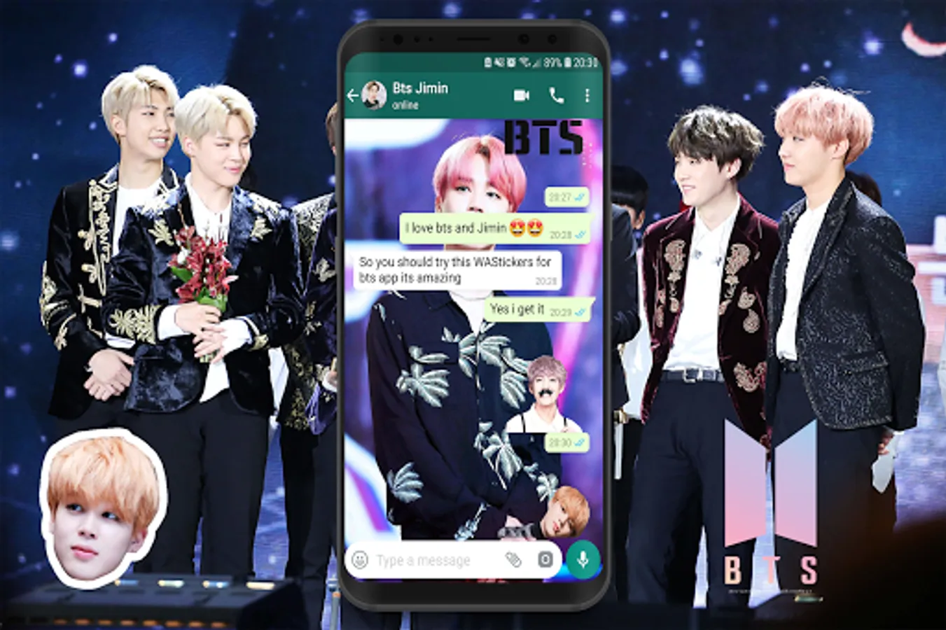 WAStickerApps for BTS Stickers for Whatsapp is an amazing app that's allow you to get your favorite stickers for the amazing BTS members