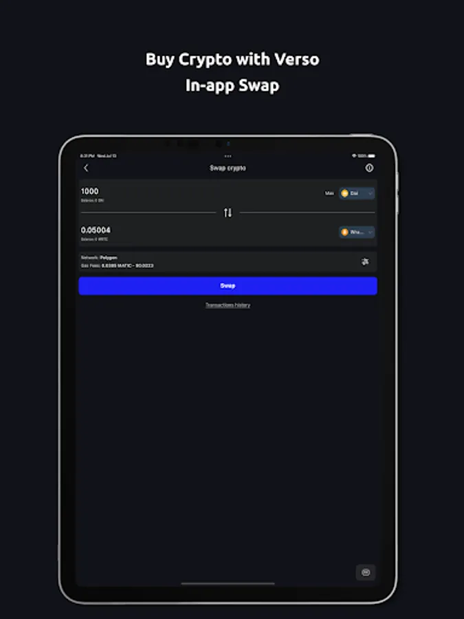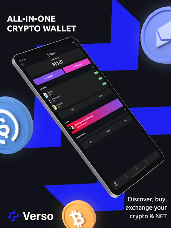 Verso is a crypto defi wallet where you can safely buy bitcoin or other cryptocurrencies. Manage your crypto wallet in a single app and earn cryptocurrency rewards. It’s a non-custodial defi wallet where you hold your crypto and your private key.