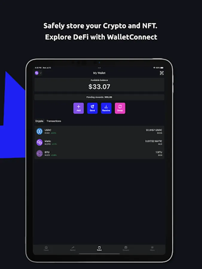 - Swap: Exchange your crypto using our swap feature with the lowest fees in the market.