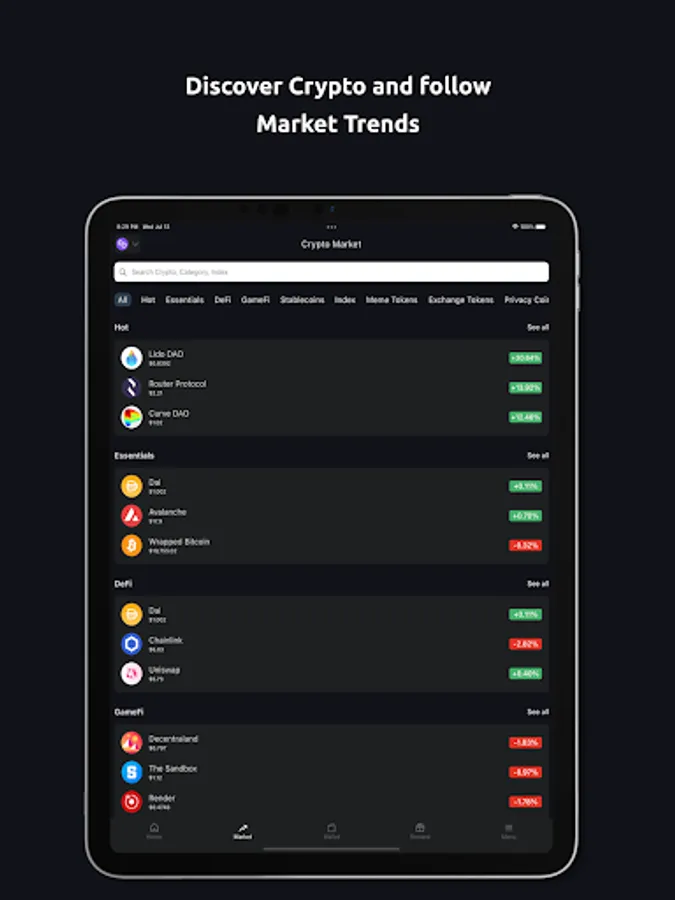 - Discover: Discover +200 cryptocurrency sorted by category (DeFi, Play to earn, NFT...) in our discover section and track their prices.