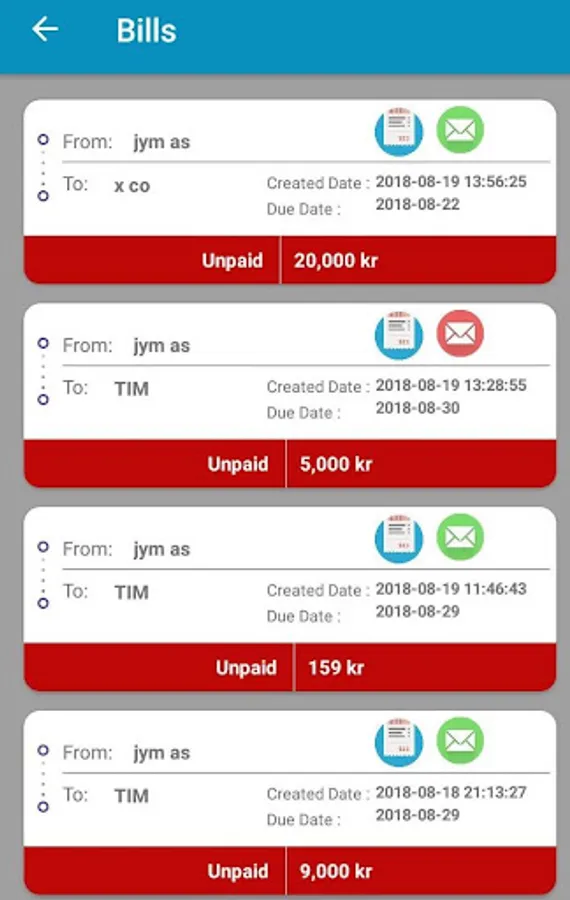 B.T.S Invoice Screenshots