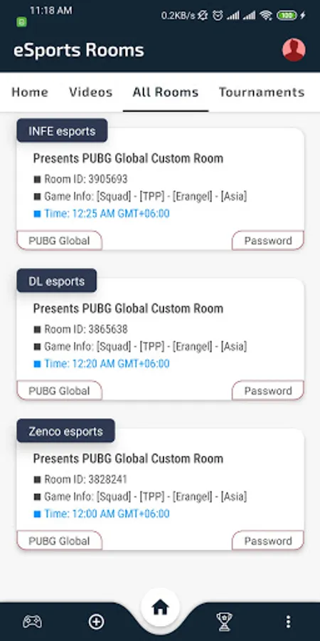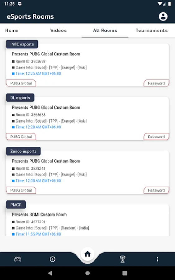 eSports Rooms is a complete app where you get all custom room details, Tournament information and Play them for free.