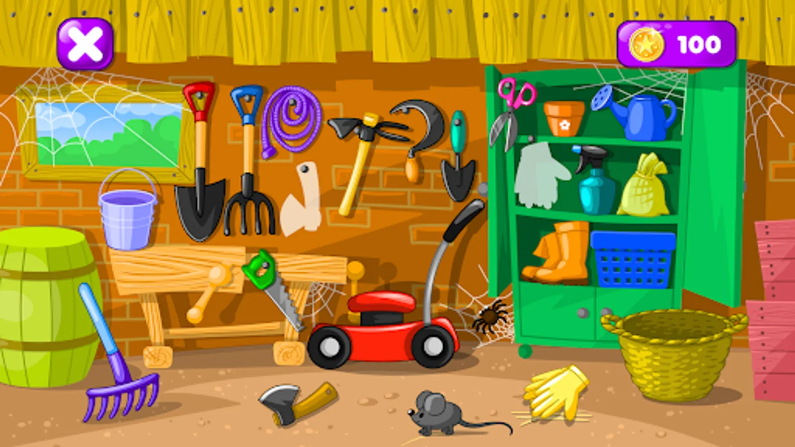 • Garden Shed: Organizing a garden shed is always the most fun job! Help the kids find all the garden tools in your messy garden shed!