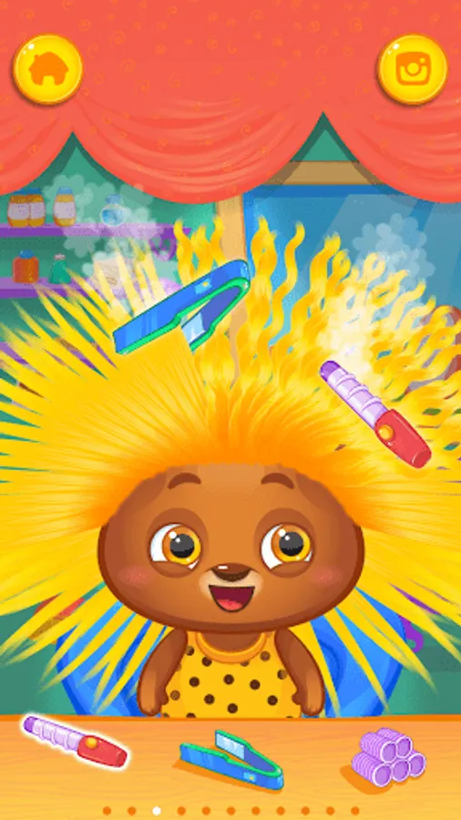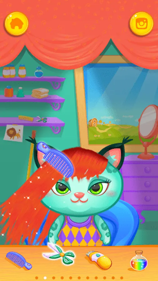 Lovely pets are sitting in front of a mirror and waiting for new, funky haircuts. Bears, cats, dogs and rabbits want to be real movie stars at least for one day. Design creative hairstyles for your customers before the curtains close.