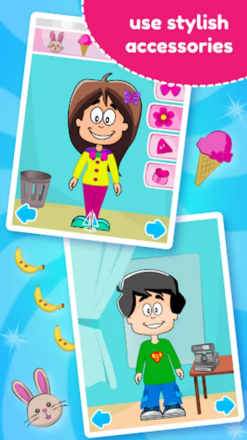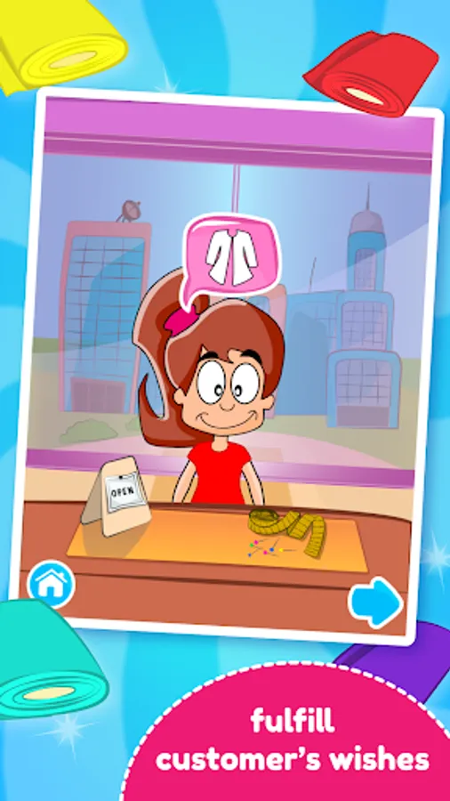 Enjoy your time with lovely kids who come to your new fashion boutique to fulfill their various wishes concerning fashion. You can make them happy by creating stylish new clothes like a real fashion designer! You will be able to design all sorts of colorful dresses, blazers, sweaters, skirts, shorts, t-shirts and trousers.