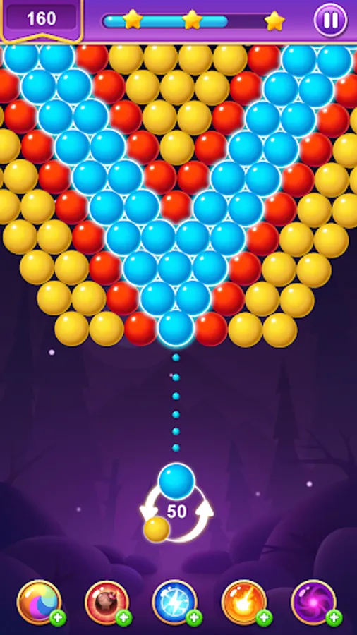 Shoot bubbles, Clear the bubbles of the same color on the board, and pass the level