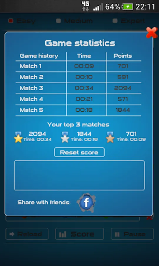 ✓ high score board