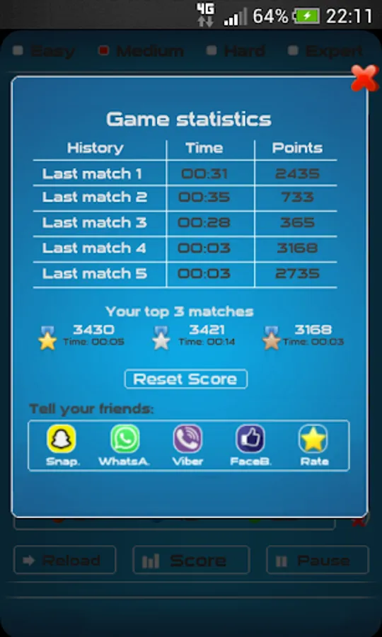 ● 10 bubbles score = 64,