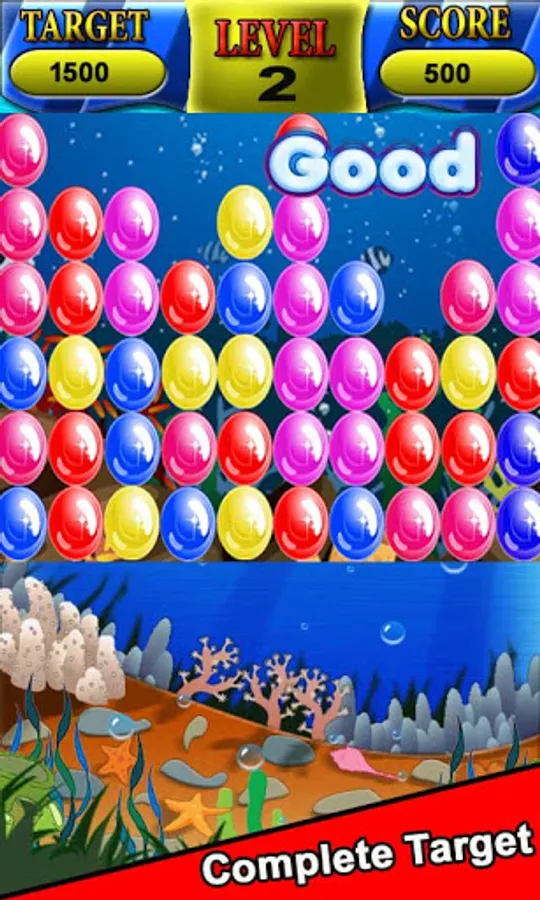 • Your target is to clear the board by popping all bubble on the board.