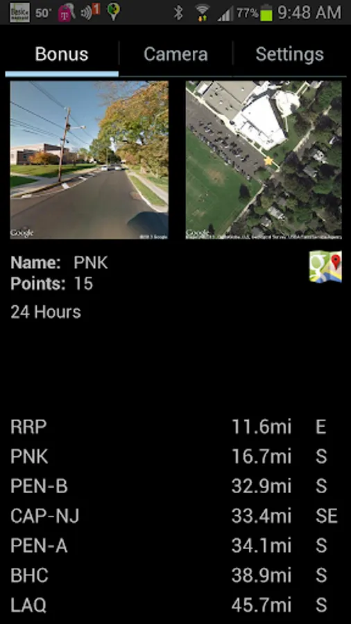 Clicking the icon next to the bonus name will immediately start Google Navigation to that bonus.