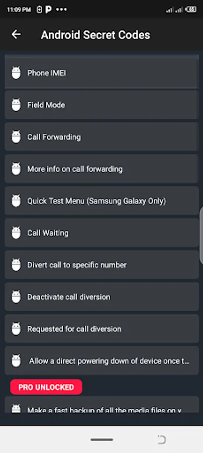 Android developers also create many backdoor through which you can enter into the system and you can change settings. In smartphones these backdoor are called secret codes. A secret code is defined by this pattern: *#*#code#*#*. When those secret codes hack are typed manually from the phone dial, they will unlock a hidden menus.