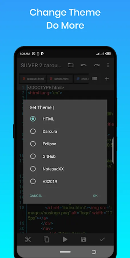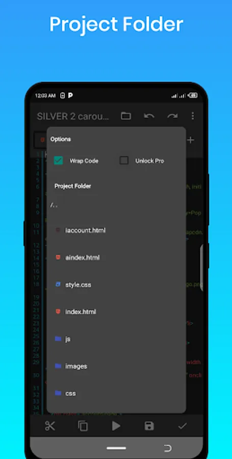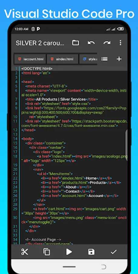 Visual Code Editor : Mobile websites Builder is an optimized text focused on coding. It is an handy tool for development on a Android. Quickly change code snippets, preview them, and maximize coding level even with our in-built JavaScript IDE.
