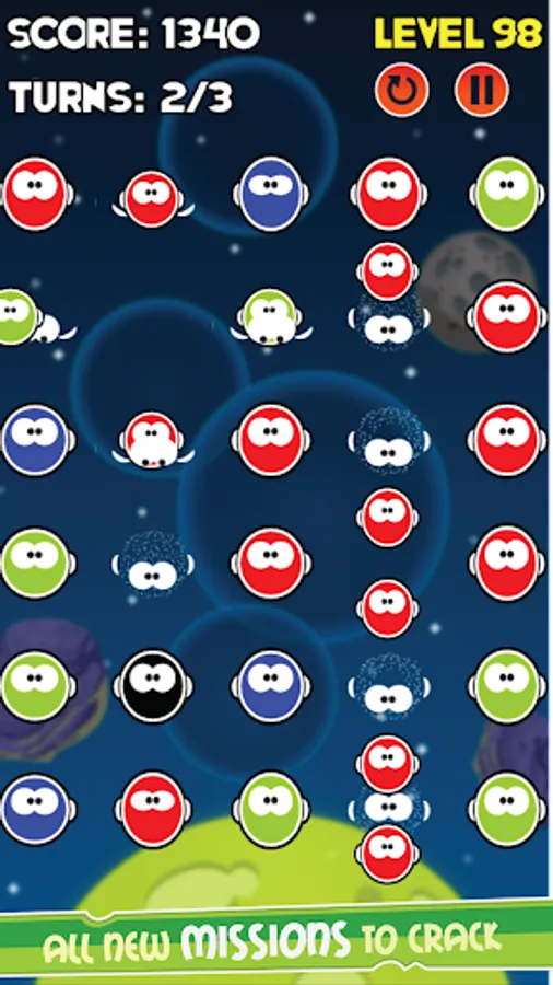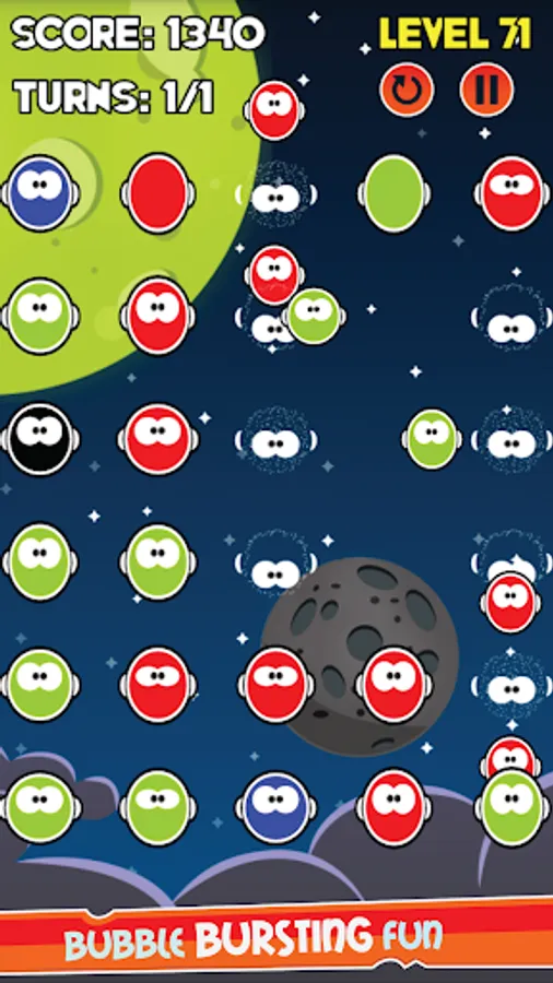 Each level has only limited number of turns to blast bubbles. Be careful, there is no witch craft in this game, just plan your strategy wisely, as even one wrong tap could ruin your game.