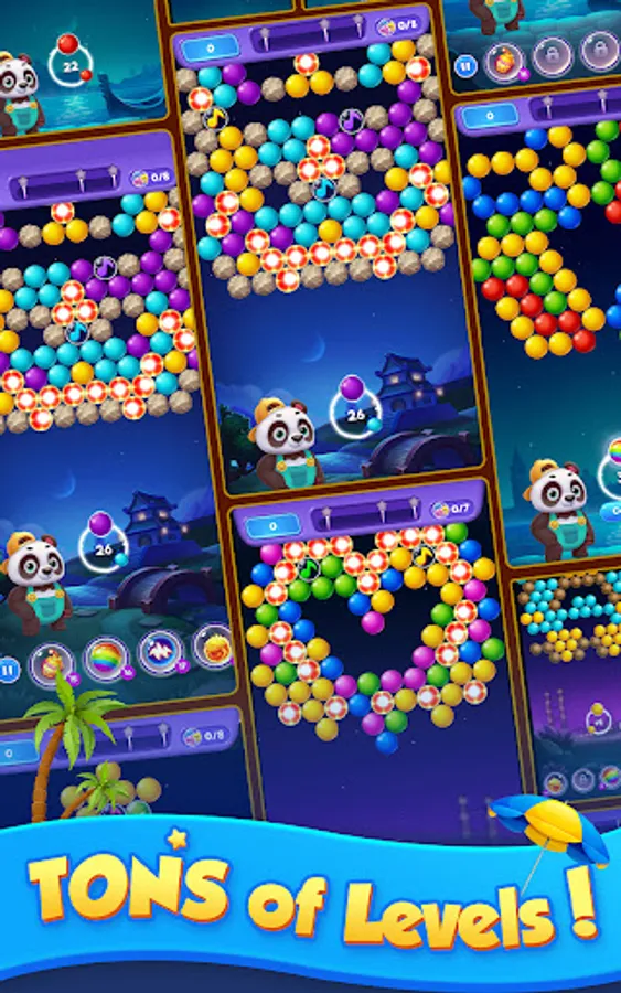 🐼 Explore bubble puzzles filled with cool effects and designs.