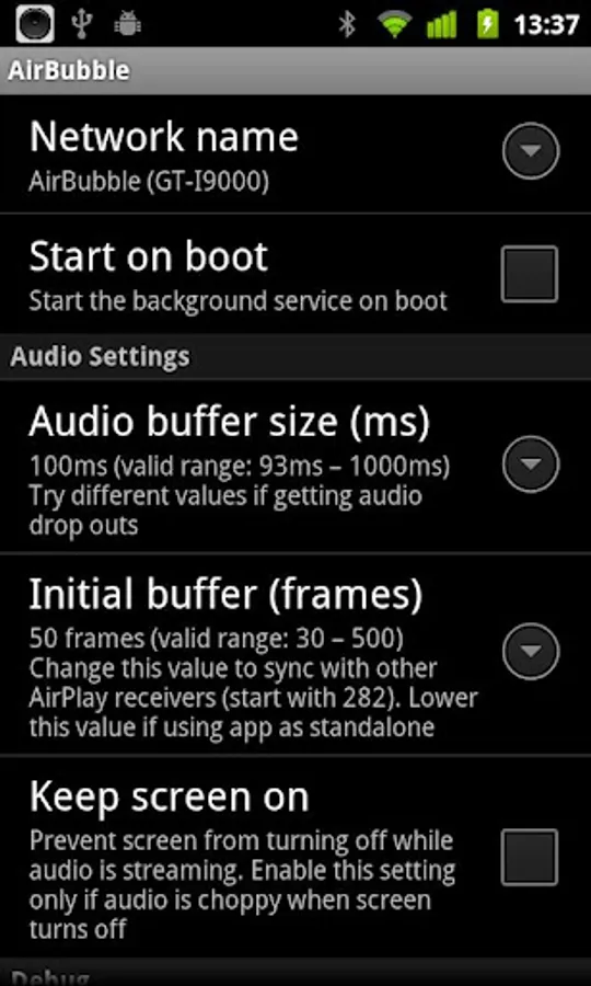 AirBubble is a lightweight AirPlay audio receiver. It will appear in AirPlay applications (such as itunes) as a device you can play music to. It works in the background, streaming music to your Android device.