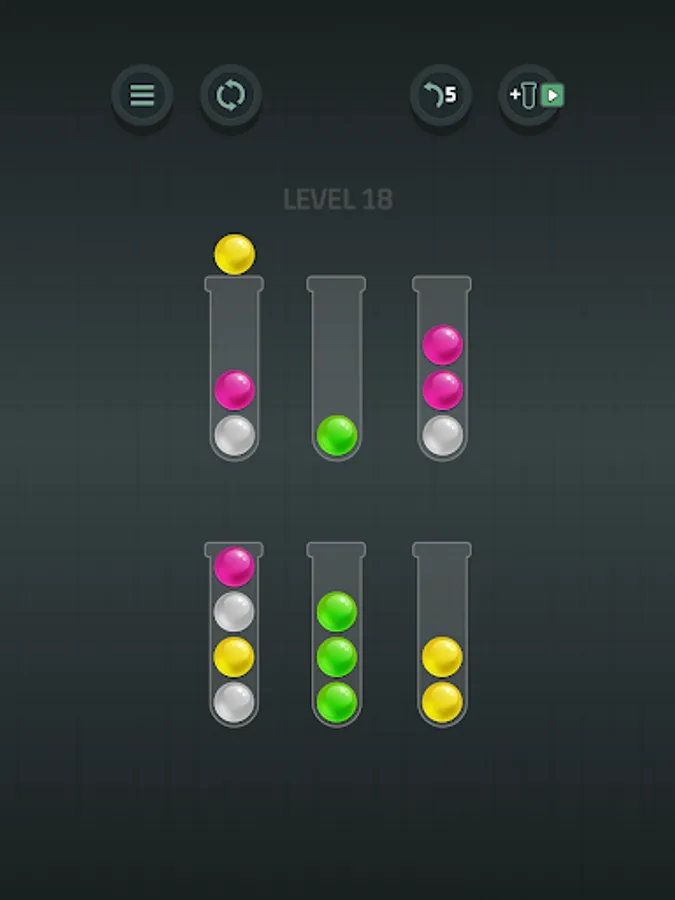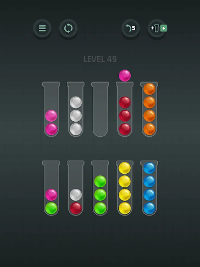 What do you do when you’re bored? Do you love to challenge yourself with mind teasers? We challenge you to play our fantastic color match sorting game for adults free where you have to stay focused. Move the dot up and drop it into another cup with the same ball color tube. After the balls in tube test are sorted the level is done in this fantastic color match.