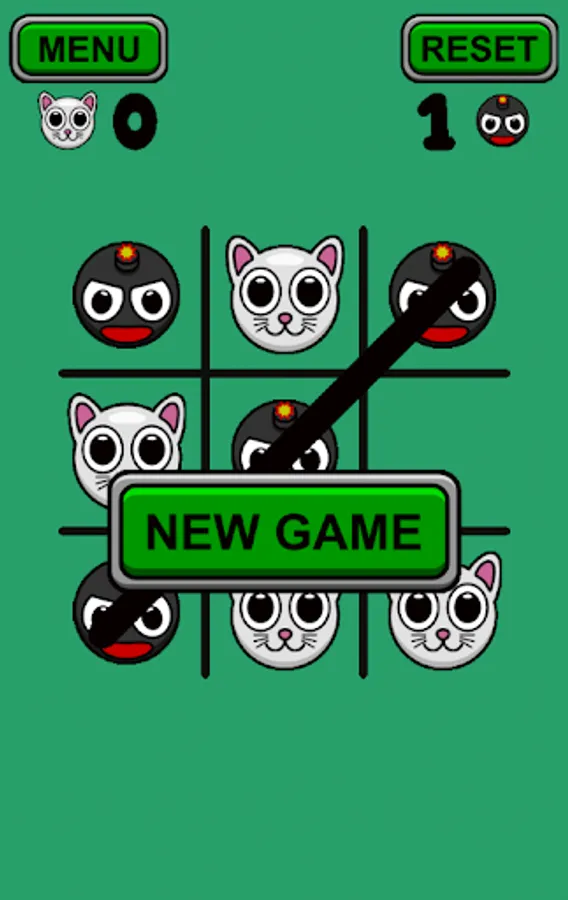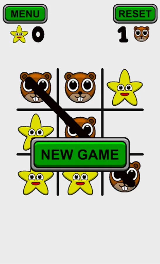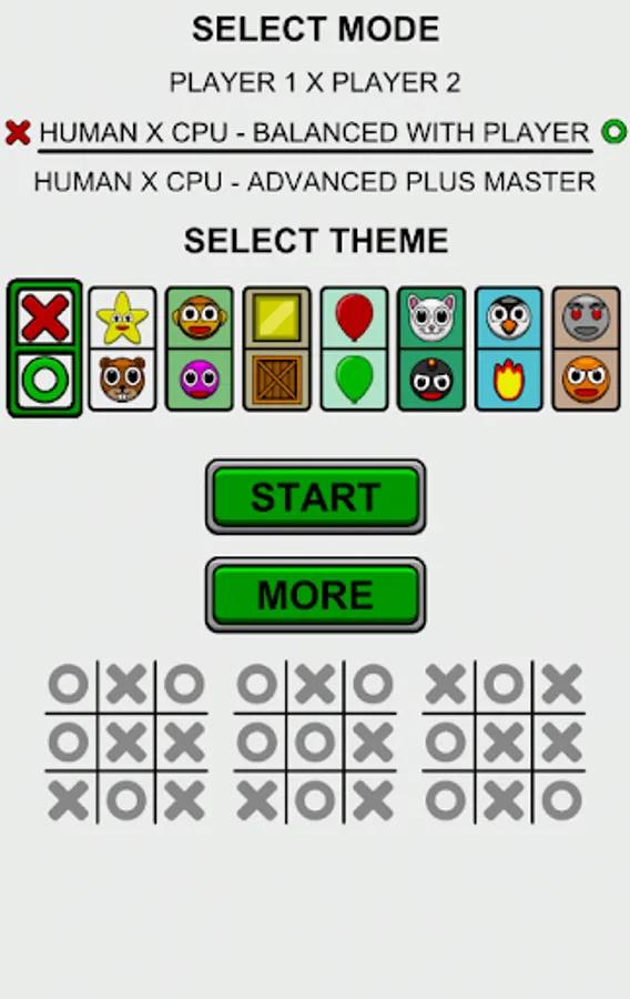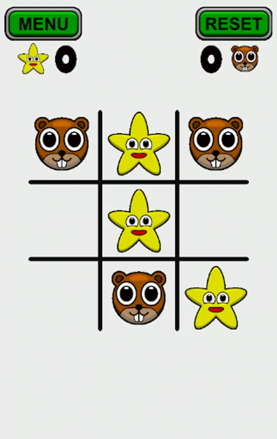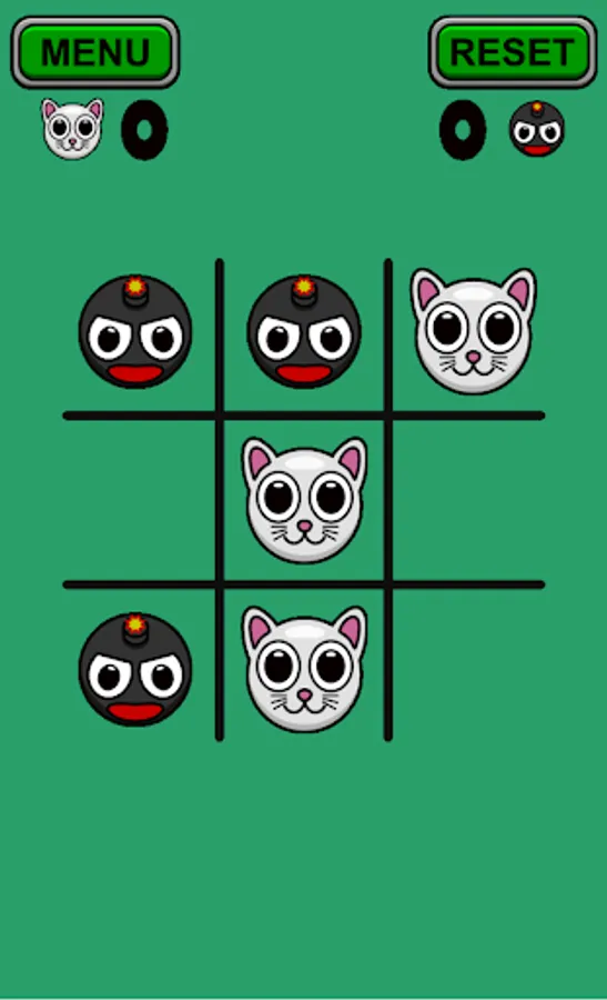 You can use more than Xs and Os of the tradicional Tic Tac Toe. You can play squirrel vs star, cat vs bomb, penguin vs fire, balloon vs balloon, box vs block and other itens from the game Bomb Squirrel, including a monkey.
