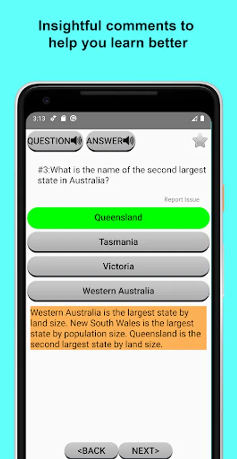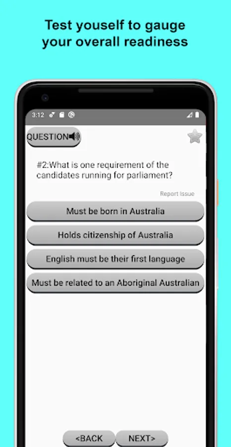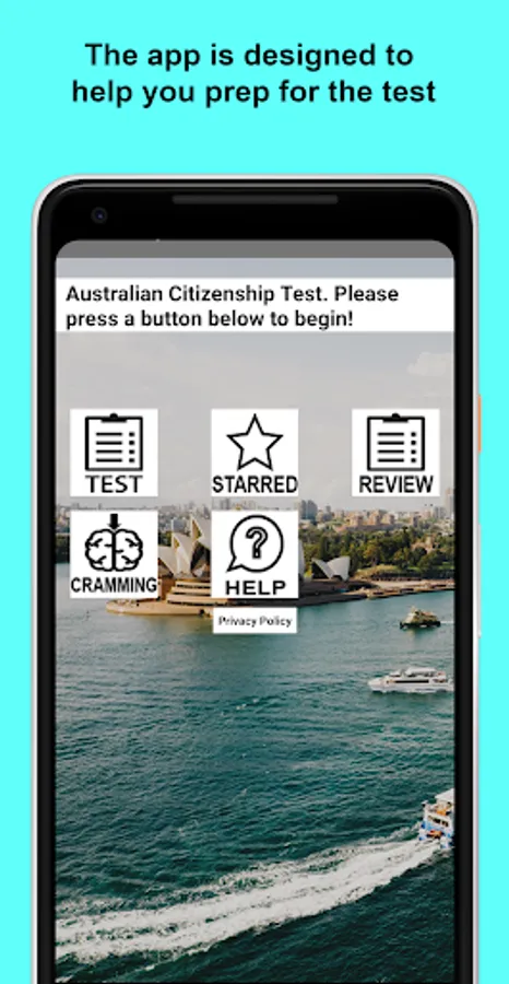 -REVIEW mode - this mode will test your Australian citizenship knowledge with all the questions in the bank.