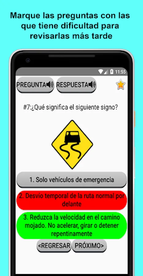 ESTRELLA: para marcar o guardar preguntas que le interesan