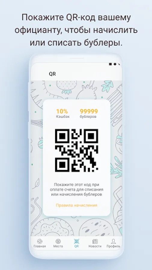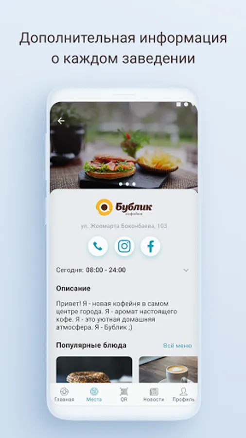Welcome to the loyalty program for the guests of the Bublik coffeehouse chain! Here you can save bublers (1 bubler = 1 som). Bublers can pay part or all of the bills in our coffee shops. Upon registration, you will receive a cashback of 5% and 150 bubbles for free! The app also has a menu and important information about current promotions.