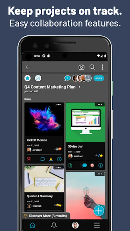 • Collaborate with your team using real-time notifications, comments, tagging, and reactions.