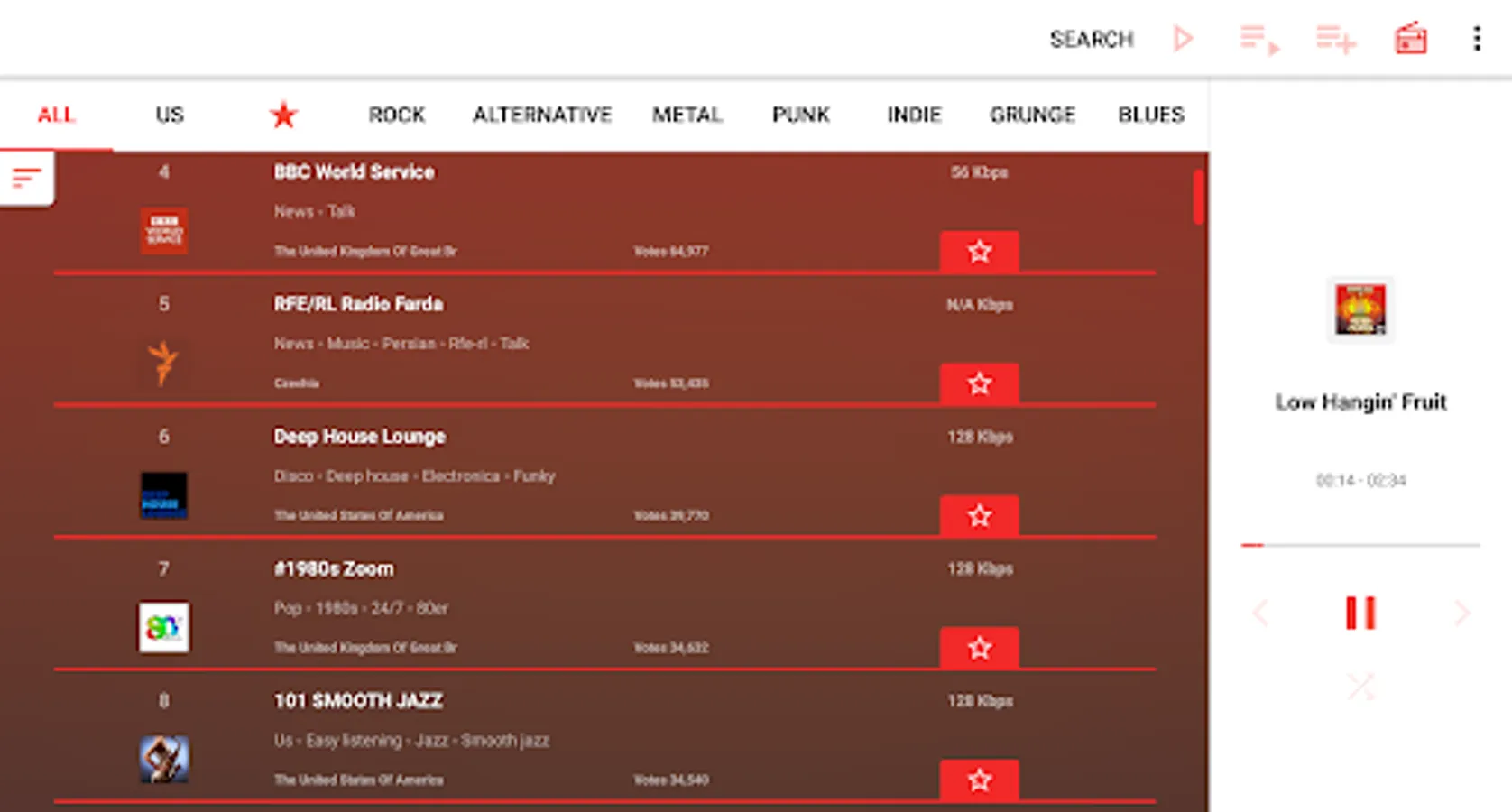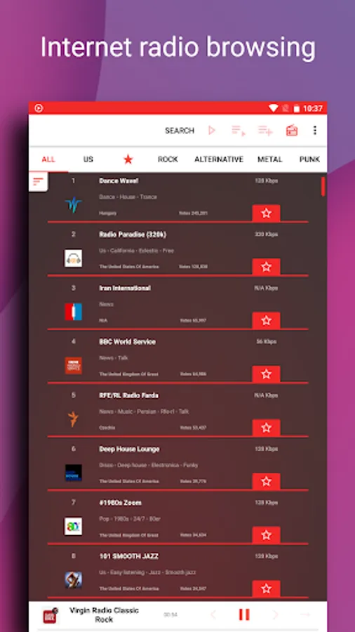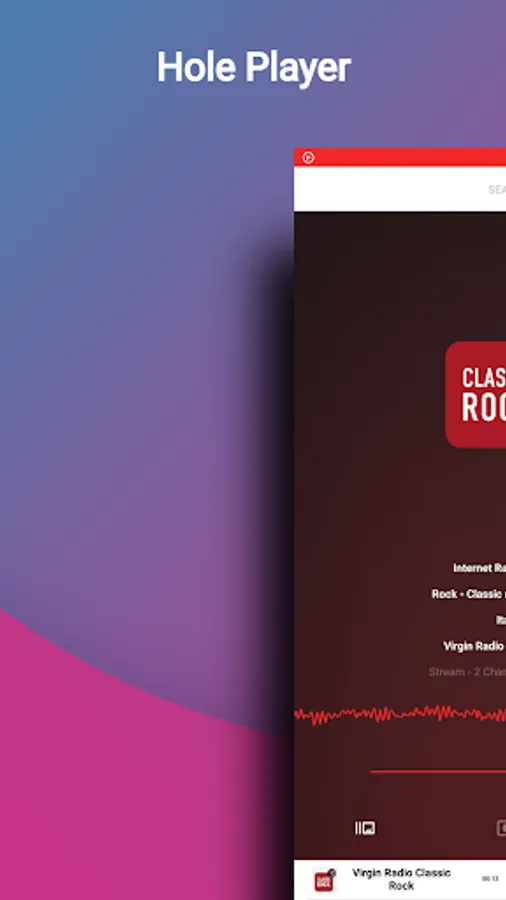 Hole Player - Music & Radio features an internet radio player which gives you the ability to stream some of the most popular radio stations (worldwide).