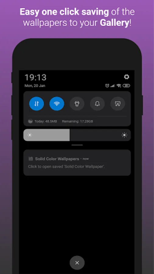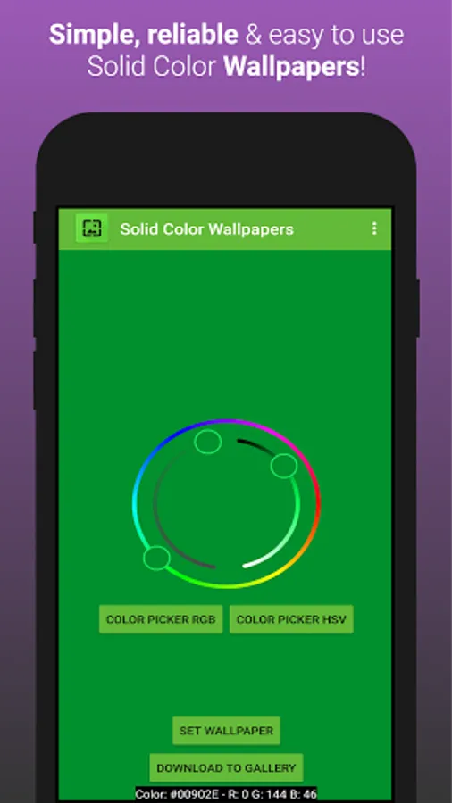 'Solid Color Wallpapers' is an application that let's you choose a color from the whole visible spectrum and allows you to set it as wallpaper.