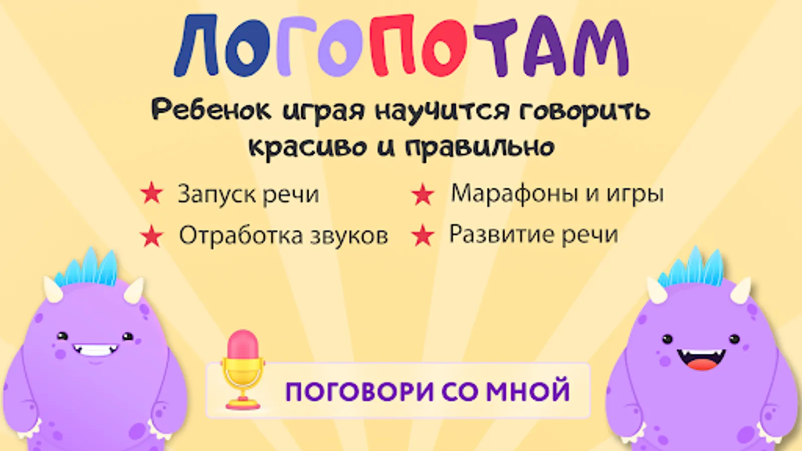 The Logopotam application was developed on the basis of our authoring programs. With it, your child will be able, on their own or in online lessons with a speech therapist, to train speech, hearing, attention, logic and grammar! And bright rewards and hints from animated characters will make the process not only useful, but also extremely exciting.