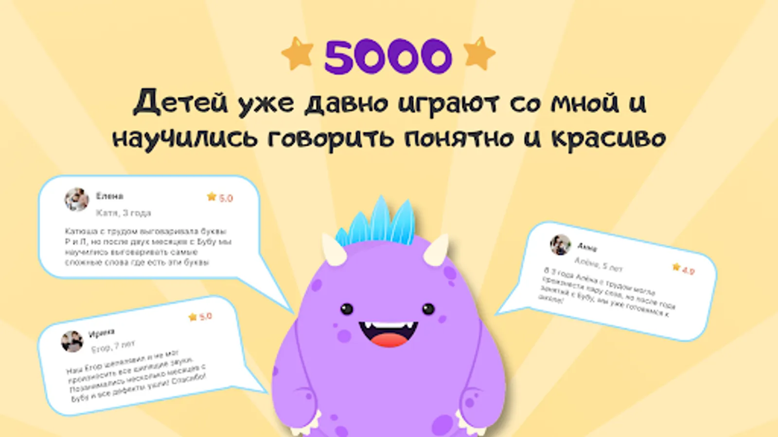 Monster Bubu will become a true friend to your child, and fun and exciting games will help develop speech, expand vocabulary and activate all the acquired skills.