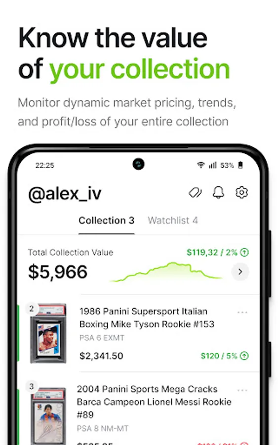 ★ FULL COLLECTION OVERVIEW: Understand your card value, profit/loss & change in value.