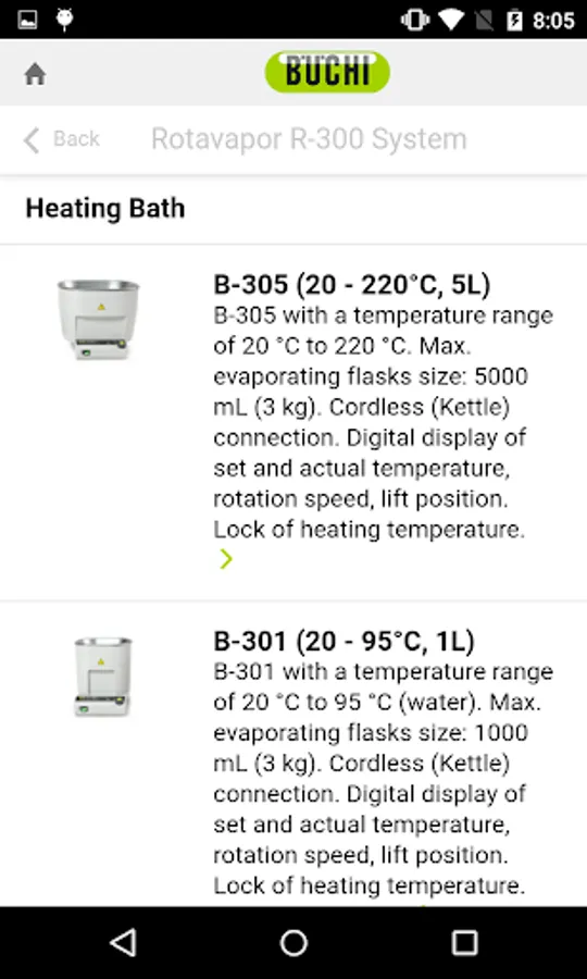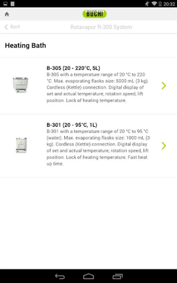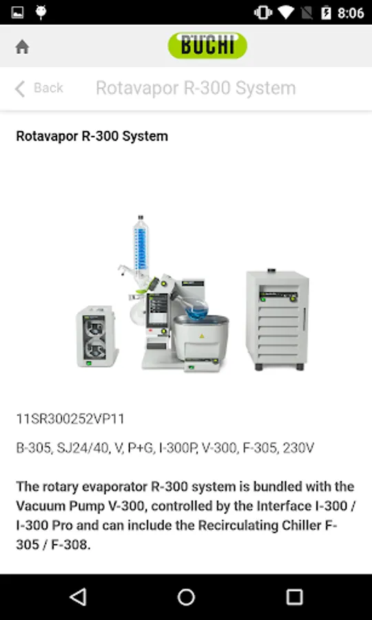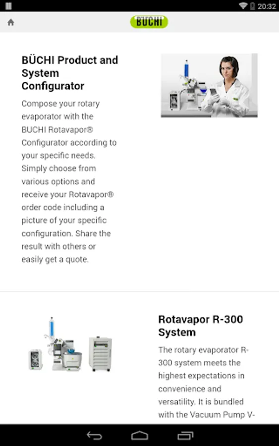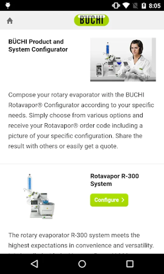- Configurator for stand-alone products or complete systems guiding through the official BUCHI ordering matrix