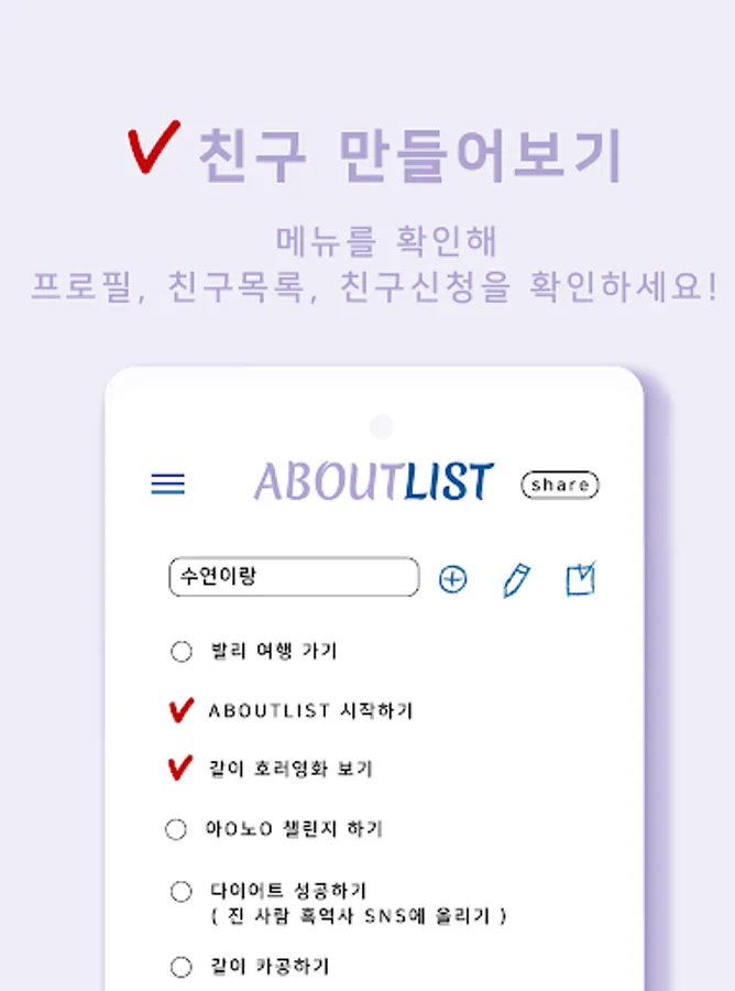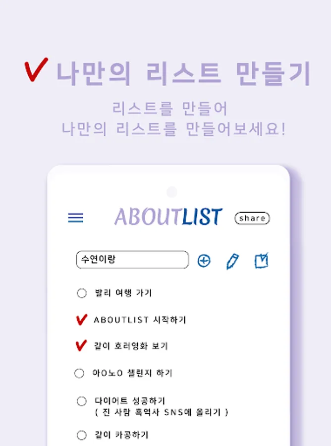The bucket list, which is a favorite, can be recognized at a glance by color.