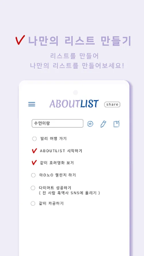 You can create a bucket list by dividing pages according to the criteria, like writing a book./
