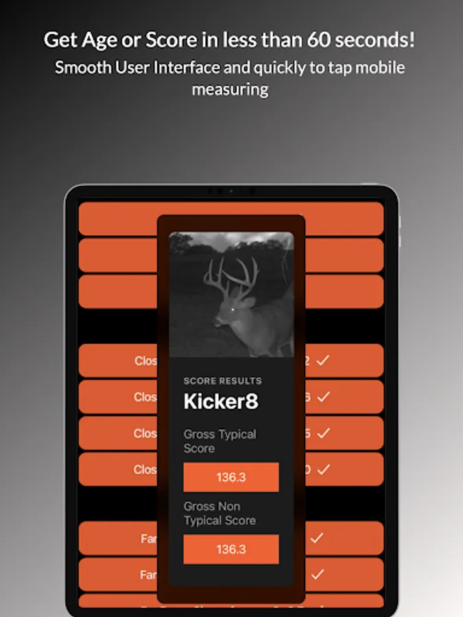 Ever wondered how to score deer? Curious what the easiest way to score a deer is? BuckScore® is your answer! Holding two U.S. issued patents, BuckScore® is the only science-proven program that allows you to score pictures of bucks in minutes. The app accurately estimates antler size including spread, beam length, tine length, and circumference all to calculate a Net and Gross score within 3% of the actual score. With BuckScore®, you have one app that organizes, documents, and scores all of your big bucks. Take a trail cam photo and get new insights with the ability to estimate the score of a buck on the hoof. Calculate size on harvest photos from years past. BuckScore® is easier and saves you time over the normal tape and note pad mess. Join BuckScore® Today!