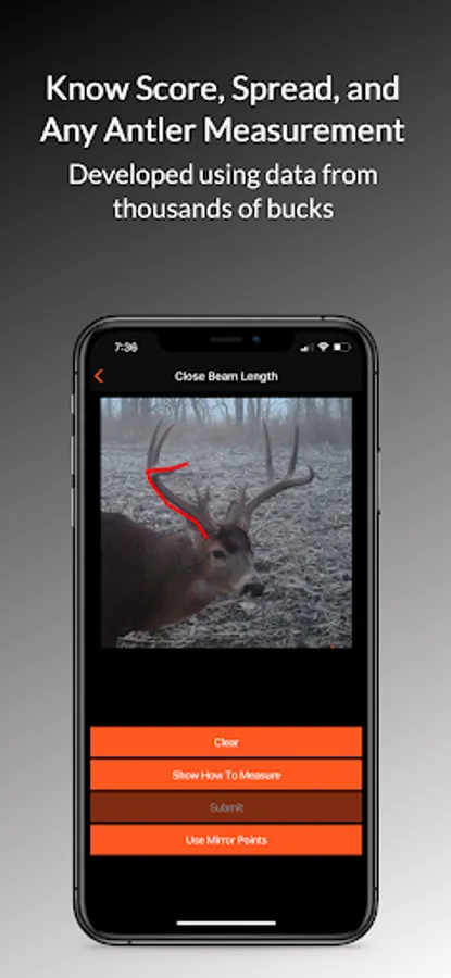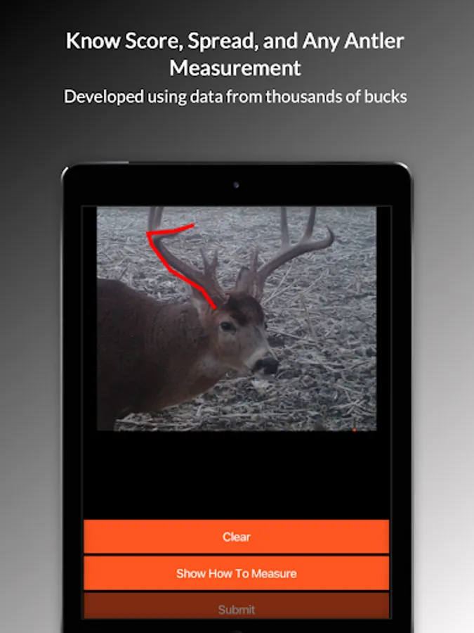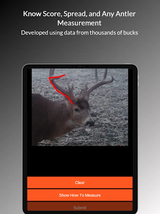 * The BuckScore® program’s accuracy is contingent upon the quality of your photo, the accuracy of the reference feature, accurate buck information (age of buck and location by state), and the manual insertion of measurement points input by the individual. These elements are also used to determine if the photo is “scoreable”. The BuckScore® program’s final gross and net score accuracy comes from your ability to measure the reference feature perfectly. On mobile, as convenient as it may seem, your finger/stylus can add extra error to scoring if not measured properly. The BuckScore® program is not an “automatic” program as it does requires manual drawing of start and stop points on each measurement to achieve an accurate result. If you are not satisfied with the ability of the BuckScore® program, please contact us for additional resources and help from a BuckScore® specialist.