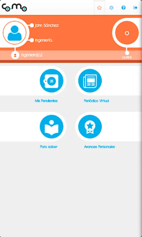 Points: You can know in real time the points earned by meeting the indicators of interaction in the system and from there redeem points for prizes, awards according to the catalog published by the Organization.