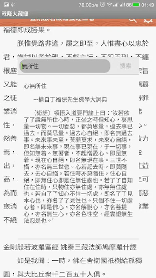 2,在阅读经典时增加了长按本地搜索释义功能