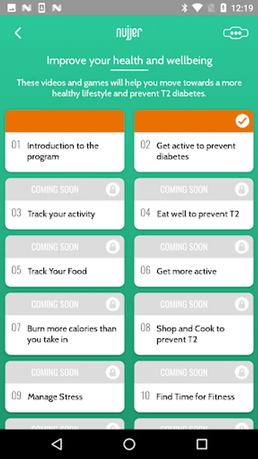 The app “learn” section provides users with a curriculum of learning modules, which have been developed based on proven educational topic in the diabetes prevention space. The user will receive messages directing them to different modules over the course of the 12 month trial.